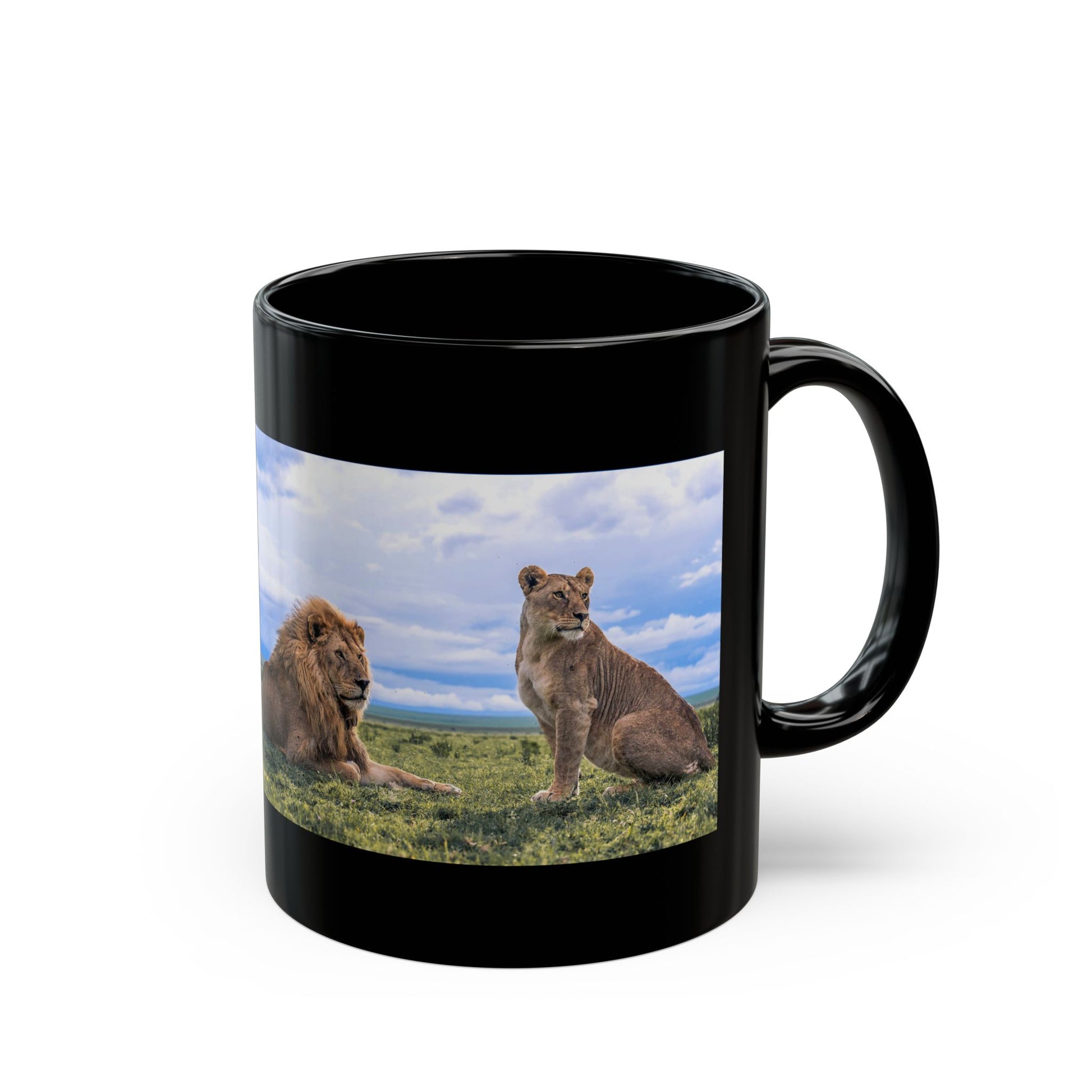 Lion couple Black Mug - Perfect for Animal Lovers, Travel Gifts, Nature Enthusiasts, Birthday, Christmas